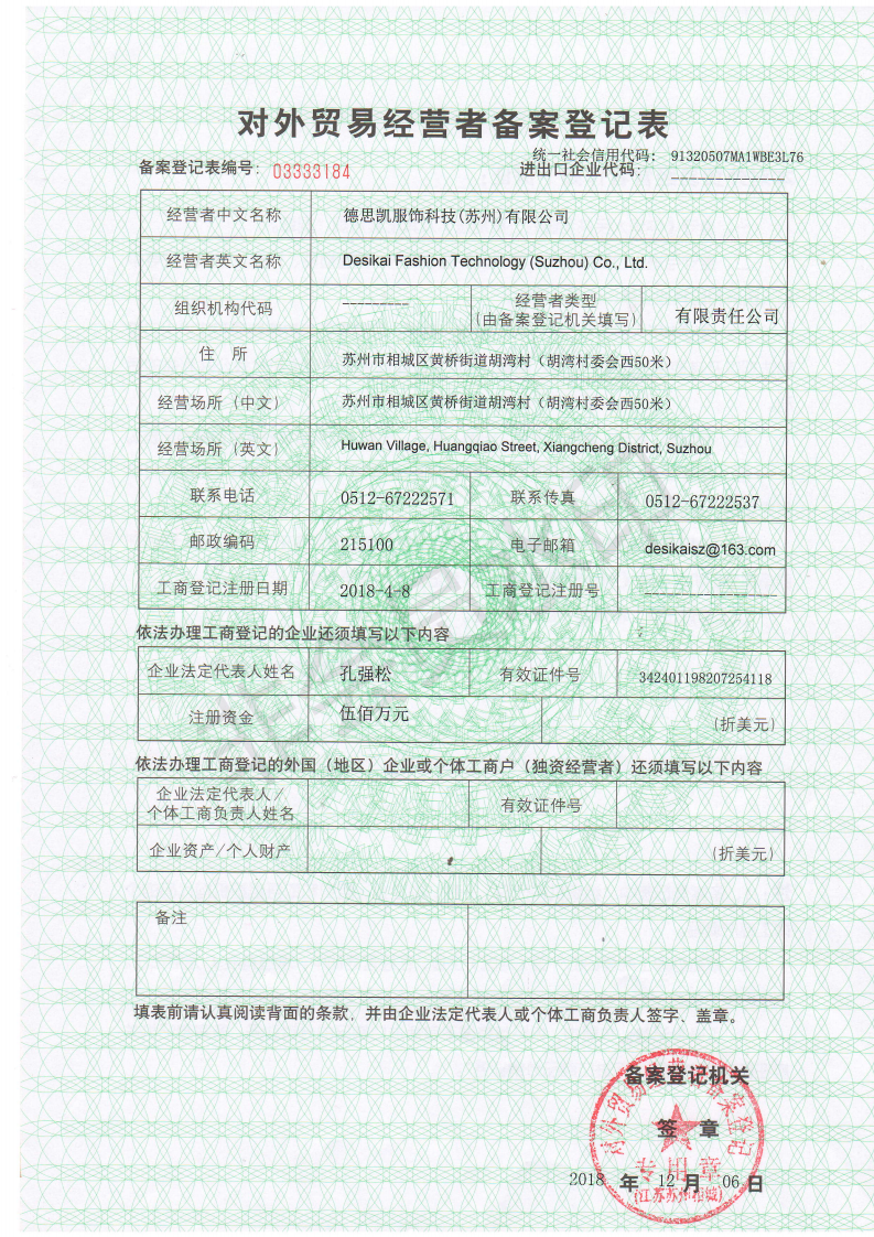 德思凱服飾科技(蘇州)有限公司